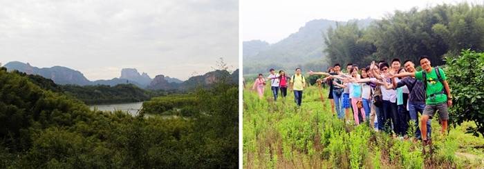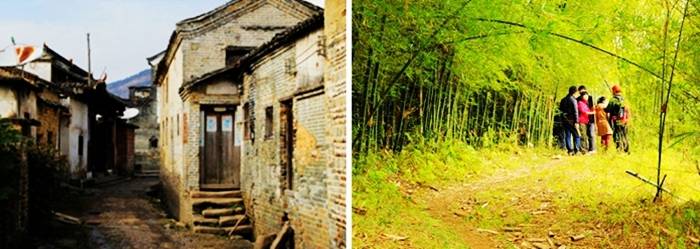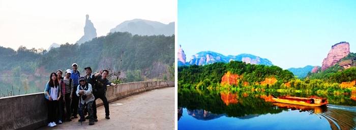 第一天,我们徒步走锦江画廊,锦江画廊如果参加景区的漂流需要100每人,我们徒步是沿着江边走,风景一样非常的美,徒步路段从夏富至牛鼻村,最后到巴寨的山脚。一路上有竹林、果林、小桥流水、美丽的江景,徒步的过程中我们会把大丹霞的姐妹峰、五指峰、童子拜观音-仙山琼阁等美景一路从不同的角度欣赏,同时我们会看到锦江江水浓如翡翠,将两岸青山倒影入江中。我们徒步的路段是锦江精华地段。
