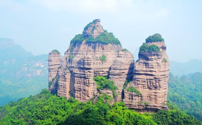 ▲形态美:丹霞山以山石造型奇特而著称。其山峰四壁由赤壁丹崖构成,造型各异、拟人拟物、拟兽拟禽的造型地貌,构成其最基本的景观层次。