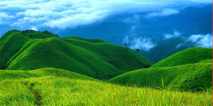 武功山风景名胜区位于吉安市安福县和萍乡市境内,属罗萧山脉北段,绵延120公里,总面积260余平方公里。主峰白鹤峰海拨1918.3米。武功山的高山草甸海拔之高,面积之广在世界同纬度名山中都是绝无仅有的。10万亩草甸绵绵于海拔1600多米的高山之巅,穿云入雾,春夏绿油油,秋季金灿灿,冬天白皑皑,游人无需远赴边陲,便可领略北国风光,真可谓“天上草原、人间仙境、北国风光、绿色家园”,被专家称为“奇山伴草甸,天下一绝。
