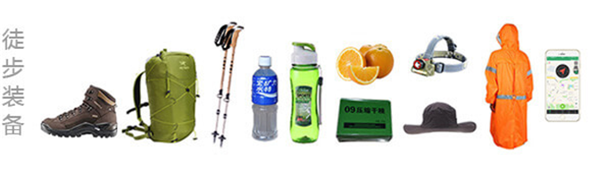 1. 登山鞋(必备)、双肩背包(必备)、登山杖(必备)、雨具(必备)、头灯/电筒(必备)、手套(必备)、垃圾袋、防晒帽、防晒油、手机(带好充电宝)。