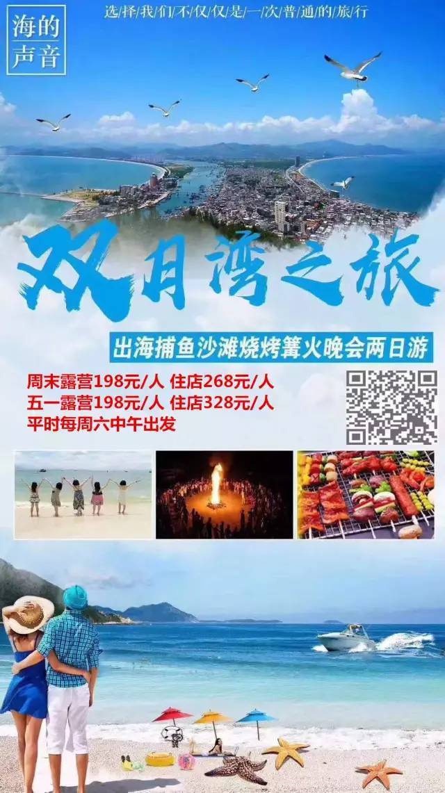 11-12号双月湾烧烤、篝火、捕鱼二天露营198,住店268