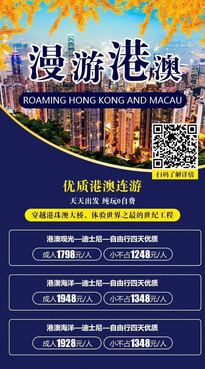 暑假香港澳门纯玩无购物团,天天发团