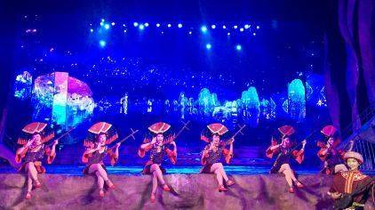 之后欣赏被誉“看过了终身难忘”的大型山水情景互动观赏剧目——【山水间歌舞杂技表演】(约60分钟),该剧采不同场景变化和一流的声、光、电舞台技术运用,充分展现了漓江的历史变迁、山水景观和人文情怀。(赠送项目根据实际情况进行调整,若因特殊原因无法观看,则取消,费用不退)