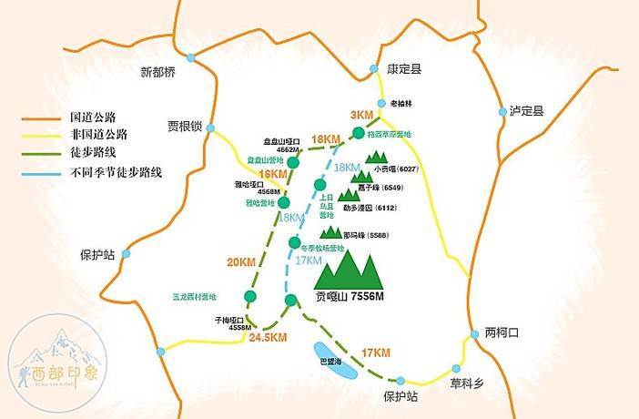 时间安排——从成都开始,前往格西草原开始徒步,再到返回成都,需要七天时间,而真正的徒步旅程则需要耗时五天。