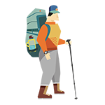 45L背包、保暖衣物(最好是冲风衣裤、登山杖、登山鞋或运动鞋)、足够的换洗衣裤和袜子;