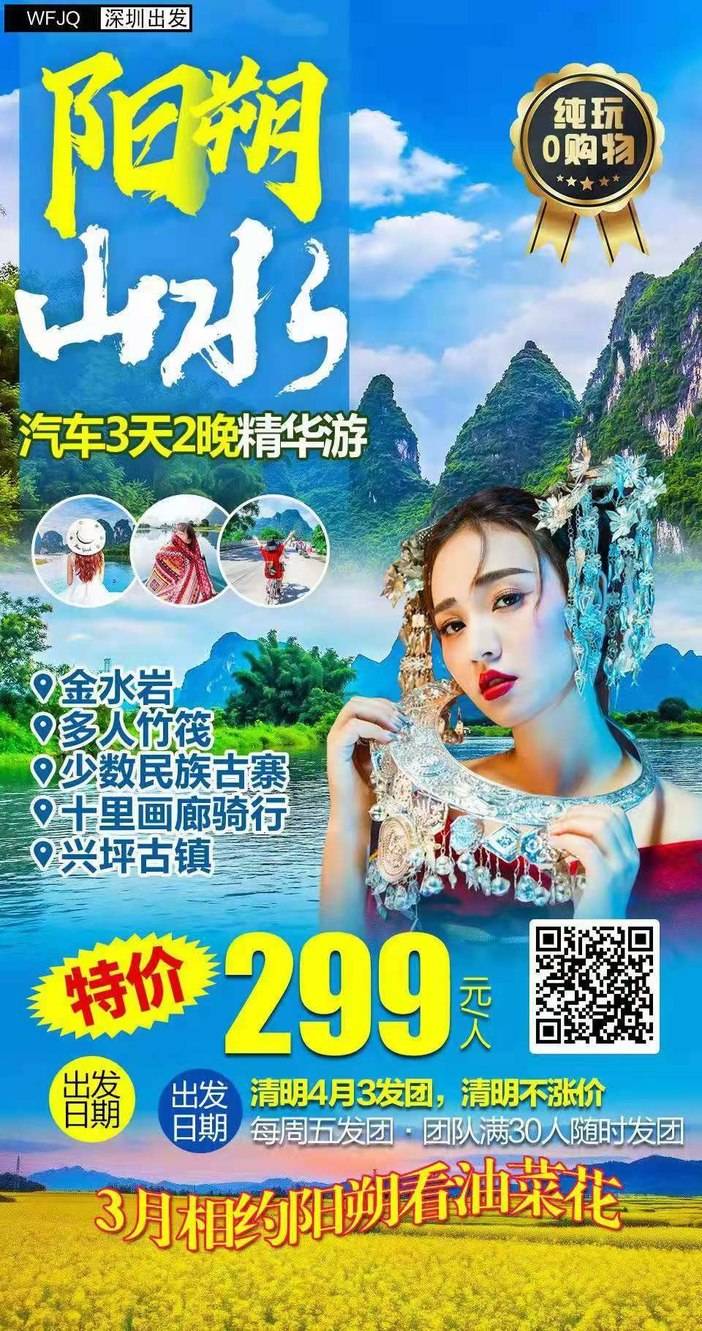 准时出发,请勿迟到哦(深圳-阳朔全程高速,大概5.5小时到达。中途会停服务区,可带点干粮可以路上吃)。