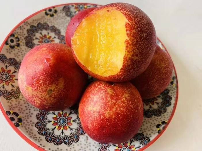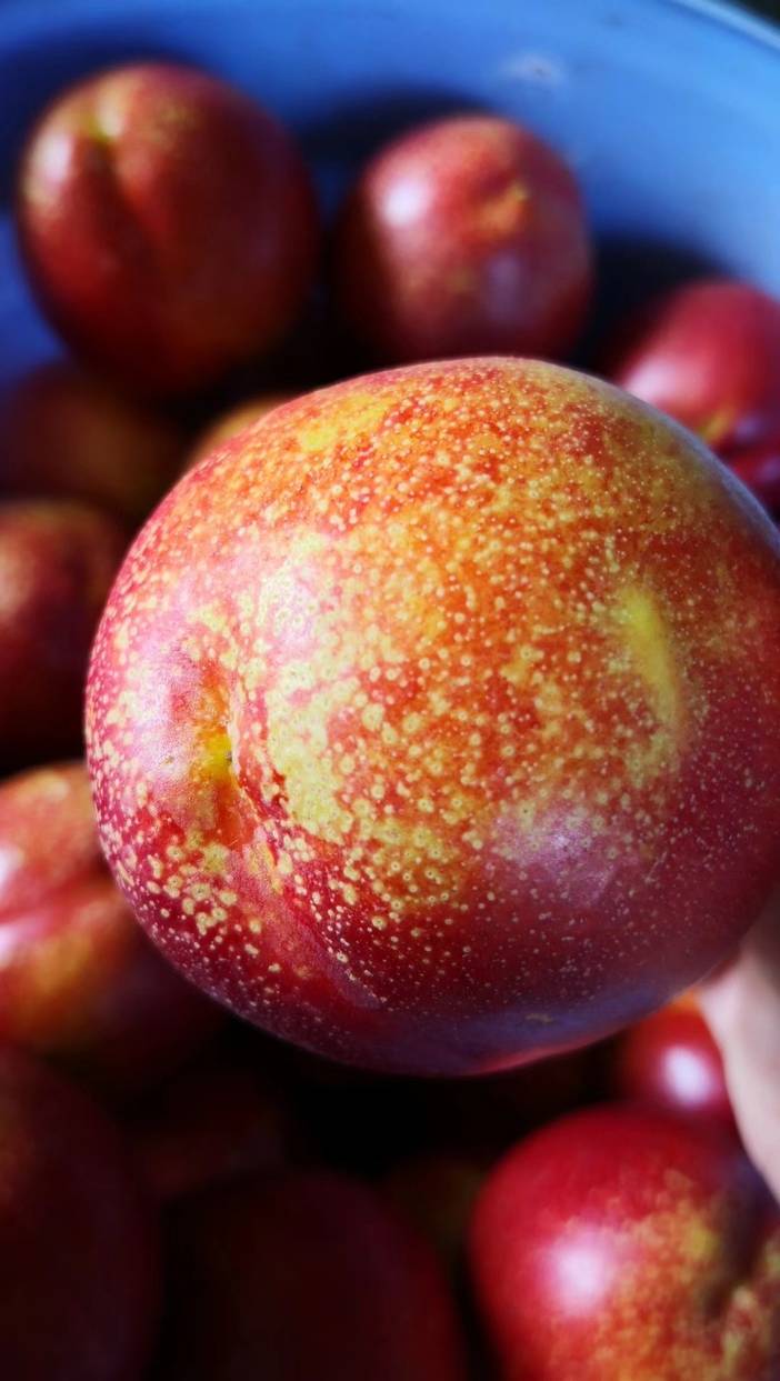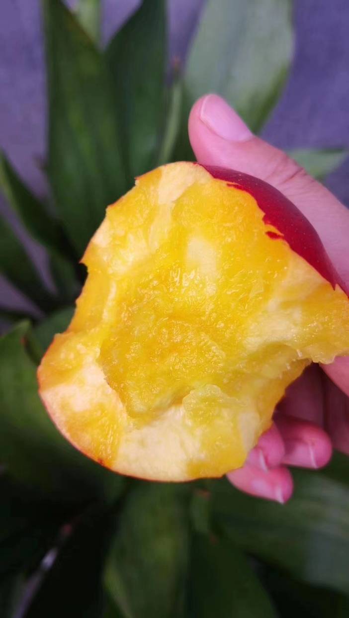 我们所说的黄桃是黄油桃,油桃跟毛桃(也叫水蜜桃)不一样,有一种黄毛桃,就是黄的水蜜桃,口感很一般,没桃味。