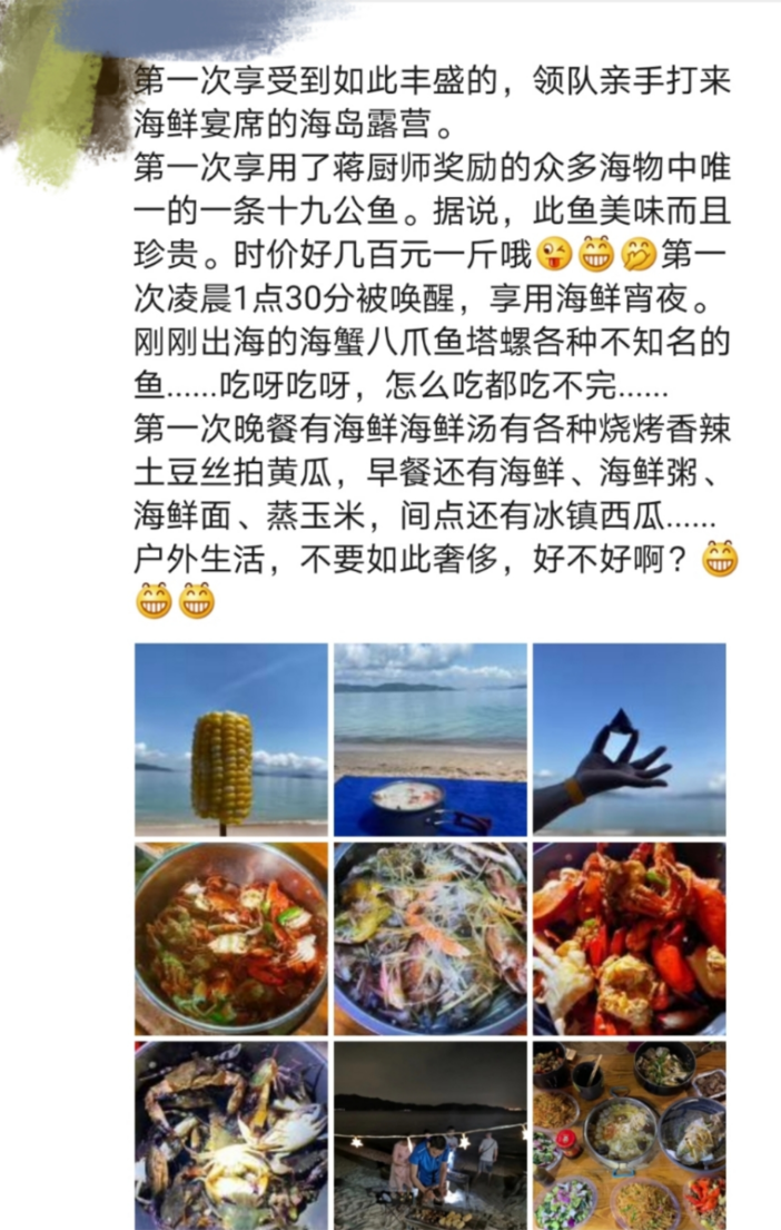 如果你是名还吃懒做的请绕道而行,如果你是名勤劳而朴实的小吃货,我们超级欢迎你的到来。那么以后海岛露营,跟着群主走,绝对有肉吃,