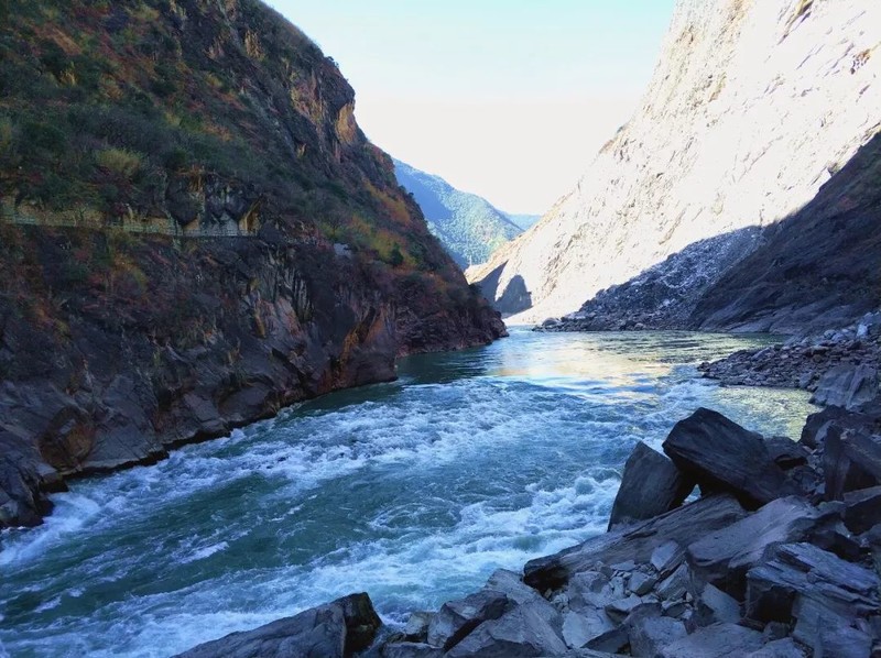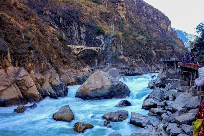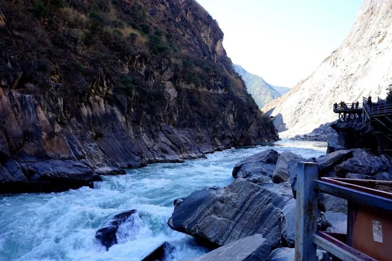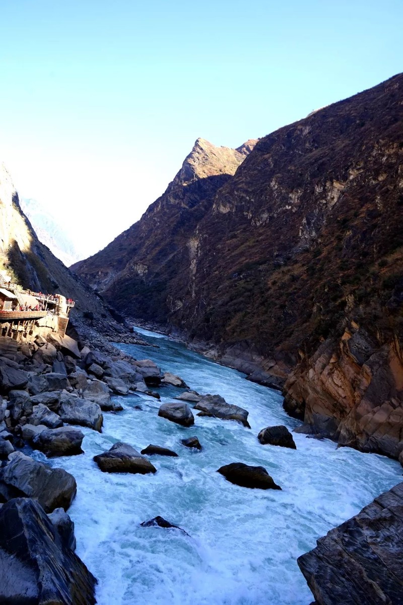 虎跳峡是世界上著名的大峡谷,以奇险雄壮著称于世。分为上虎跳、中虎跳和下虎跳3段,多处险滩,江水在玉龙、哈巴两座雪山的夹峙下奔流向前,气势不凡。