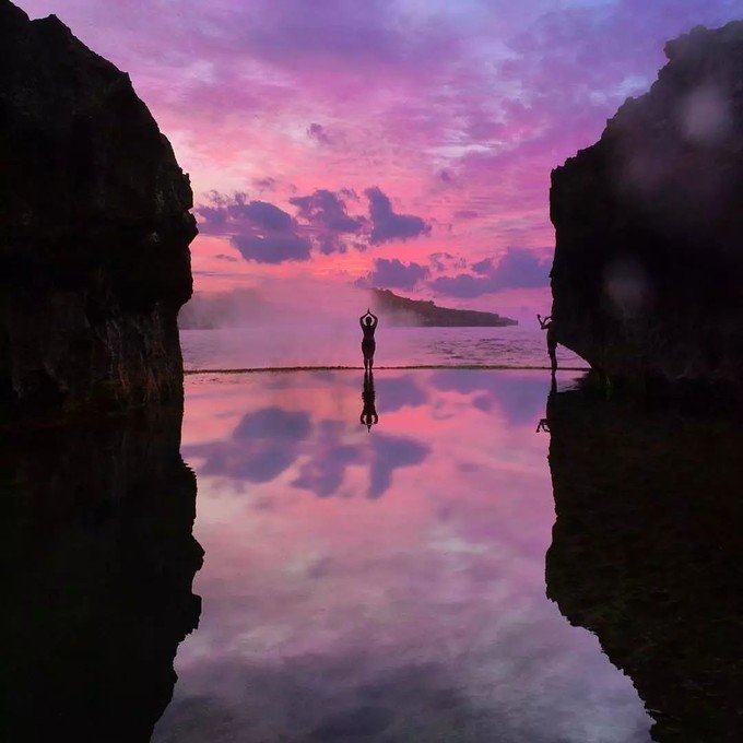 一块锋利的火山岩背后,隐藏着一座天然的无边泳池。 火山岩经由海浪日积月累的拍打,侵蚀形成了这般独特的岩内浴池奇观。 池内海水碧绿澄澈,池外便是广阔浩瀚的大海,给予旅行者一座360度无死角的网红拍照地。