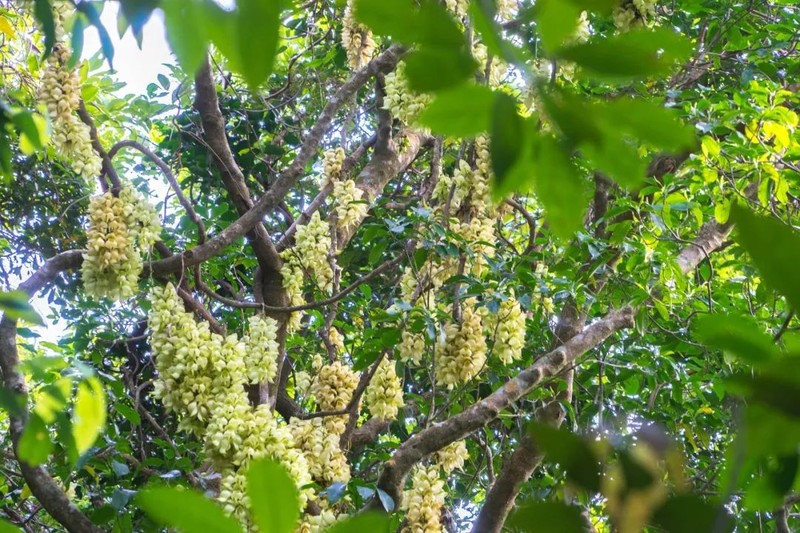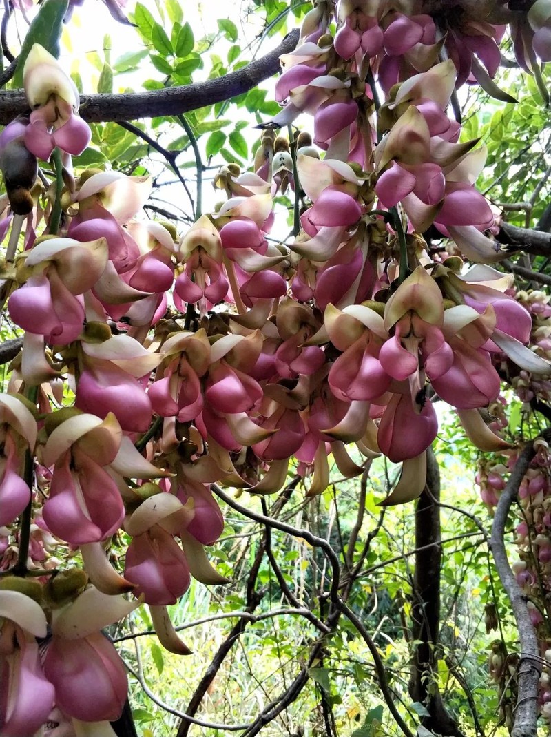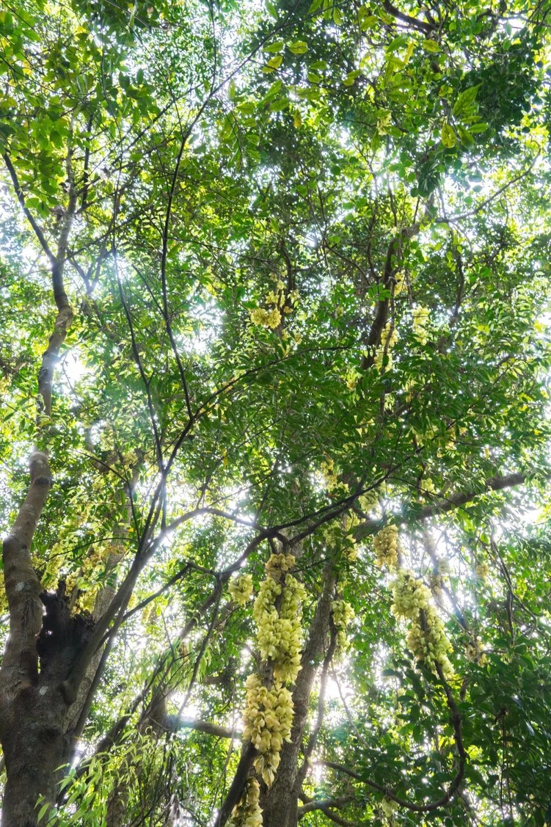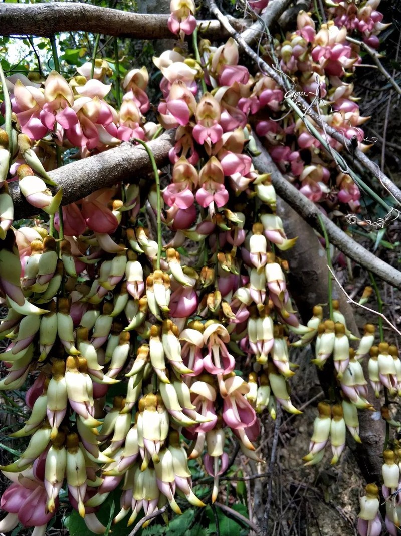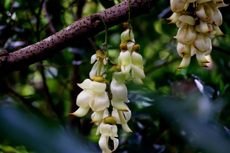 新会棠下镇乐溪村后小蓬莱山上(现已划归江门市蓬江区)的公坑寺(天成寺)有奇花,名“禾雀花”。其藤粗过人臂,攀缠于其他树上,如挂秋千,如晒罗带,苍劲盘曲,蔓延公坑寺周围三四十亩地。其花大小如禾雀,一串串挂于树间,绵连不断。每串二三十朵,由一青绿色小藤串连,酷似千万只禾雀栖息于林中浓荫下。花呈米黄色,有四瓣,花托似雀头,并且有两个如眼睛的黑点。正中向阳一瓣如雀背,侧两瓣如雀翼,底瓣后伸如雀尾。花房内有一撮细长略弯的花蕊,人们称之为“内脏”。若不经意碰损某一部分,伤痕即出现微量似血的液体,令人顿生怜悯之情。摘一朵完整的花搁置两小时后,即变成褐色,与真禾雀毛色一样。每年清明前后,禾雀花开,如万千只鸟栖息树上,蔚为壮观。