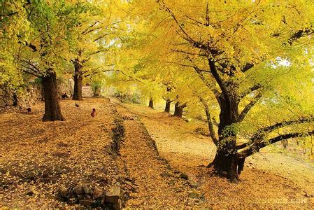 南雄银杏—梦幻般的金黄世界漫步于南雄坪田镇坳背、姜塘、冯屋、军营寨等几个古银杏树村的乡间小径上,古老银杏林与沧桑的乡村建筑和小道相映相映成趣。地上一层层金灿灿的地毯,不时 “淹没”人们的脚尖。树上,金光闪闪的杏叶,摇摇曳曳,在秋风中仿佛金蝴蝶般翻飞起来。走入深秋的银杏林间,就仿佛走进了一个梦幻般的童话世界中。有人感慨,这金灿灿的场景可以媲美北京红叶~