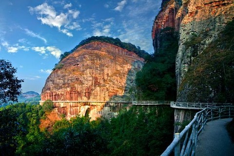 三千米天道所过之处,有绝壁,也偶有树林,时而险峻,时而穿林而过,边走边赏玩,一路高潮迭起,有感慨,有惊呼。平远天道真不愧为人工雕琢与天然生成缔造形成一道独特奇观! 出发请一天20:00前会群发短信或电话通知领队及车牌信息,如果没收到通知的,要QQ问一下。报名成功后,可以问天山要个联系电话。没报名成功前,或没什么特别特别特别重大的事情,杜绝来电! 欢迎公司企业团体包团,包团天天出发! 为公司企业团体策划活动,可根据需要制定行程。 我们可提供正规旅游合同及旅游发票。 【平远天道:五指石景区】: 远县五指石风景名胜区位于粤赣闽三省交界处的茫茫群山中,一片典型丹霞地貌,五座凸起的雄峰,太平佛大战黑蛇精的传说故事,隆武帝反清复明的历史遗风,造就了一方胜景——五指石:石林寺梵音传唱、烟云袅袅;聪明泉泉水清冽、源源不断;一线天小雨不湿、寒风不入;千年古枫枝干遒劲、高耸如云……除了这些,五指石还有一道不能错过的风景,那便是能让您漫步云端,飞临绝壁的平远天道! 踩着脚下的梅花桩,穿过一条被各种奇花异草覆盖,绿意绵绵的天然花巷——贵妃谷,一条盘石蜿蜒而上的高空栈道映入眼帘,这便是平远天道了。曲折的天道如长龙云游、长虹卧波、长风赤练般盘在山腰,一边是陡峭的千仞石壁,另一边是深邃的万丈深渊,气势恢宏、壮观至极! 沿台阶拾级而上,首先经过的一片密林遮日的缓坡地带,茂密的树丛、清新的空气、轻快的鸟叫让人产生了一种置身山林的错觉。沿天道不断向前,一场惊心动魄之旅似乎也正悄然拉开序幕,眼前不再是树木林立,顿时变得豁然开朗,人行其上如同悬挂在半空中,上不沾天、下不沾地,前不见首、后不见尾,令人心惊。紧扶栏杆低头往脚底一望,只见自己离深渊里的树梢还隔着数百米,脚下壮阔的林海以及幽深的峡谷,还有翻腾的树海,连成奇异的迷人景致。再抬头眺眼望去,一幅巨型的天然丹霞画作在眼前铺开,一座座丹霞石峰山峦起伏,连绵不绝,有的被大片原始森林围裹成颜色深浅不一的绿带,有的依旧我行我素,毫不掩饰地裸露她婀娜的身姿。丹山绿树,红翠相宜,蔚为壮观。细细观察,这群山之间不乏天然生成的奇景,有的似狮子戏球,有的似猴子望月,有的像雄鹰振翅,还有老子、孔子这等贤人安坐其中,令人拍案叫绝! 三千米天道所过之处,有绝壁,也偶有树林,时而险峻,时而穿林而过,边走边赏玩,一路高潮迭起,有感慨,有惊呼。平远天道真不愧为人工雕琢与天然生成缔造形成一道独特奇观! 【世界第一天然卧佛—平远县石正镇南台山】 地处平远县的南台山发育于1亿多年前的侏罗纪中晚期,由于受地壳运动的影响,逐渐形成以砾岩岩层为主的石峰,是典型的丹霞地貌。岩壁自上而下都是断层分布,其色艳若赤霞。南台山天然卧佛由群山作床,其头、额、眼、鼻、唇、颈、胸、腰、腿、脚清晰可见。日出之时,周身赤红;日落之际,背后霞光万道,整座山成了一张惟妙惟肖的“卧佛”剪影。 南台山天然卧佛身长5200米横跨两省,身在广东,足入江西寻乌,其头、身、足由南台山、青云山、紫林山三山连亘。佛首为南台山,山上的石、竹、绿阴、山径、亭阁、寺庙分别呈现为卧佛的发髻、额、睫毛、鼻梁、双唇和下颚;佛身是青云山,宽广的胸膛、浑圆的腰自然分明;匀称的双腿和脚板跷起的佛足是紫林山的大部分。 【大佛寺】: 大佛寺座落在平远县大柘镇凤池村,距县城2公里,位于世界第一天然大佛身旁。 大佛寺采用唐代寺庙建筑风格,依山而造,规划总用地面积66770平方米,总建筑面积18495平方米。 全寺殿堂飞檐斗拱,金碧辉煌。一殿高于一殿逐级高升,气势磅礴。所有殿堂楼阁均以长廊连接,只要一进入寺门,晴天不晒太阳,雨天不走湿路,便可到达寺内任何一处,可见建造者的独具匠心。 大雄宝殿气势雄伟,高22米,建筑面积1960平方米,由48级台阶、66根柱组成,是目前亚洲最大的大雄宝殿。“大雄宝殿”四个字由著名的佛教领袖、杰出的书法家赵朴初亲笔所书,大殿正中供奉释迦牟尼佛、药师佛、阿弥陀佛三尊贴金大佛,每尊佛像高8.8米,里面还供奉十八罗汉、千手观音,个个神情逼真,栩栩如生,游客无不叹为观止。 大佛寺目前珍藏有大量名人字画,还供奉有珍贵的本焕长老舍利子。平远大佛寺是梅州市乃至粤东地区规模最大的寺庙,是游人旅游休闲、生态观光、礼佛祈福的好去处。 南国第一玉佛:高3米,宽2.2米,厚1.1米,重约12吨。玉佛由整块岫玉雕刻而成,据考证,堪称“南国第一玉佛”。岫玉,四大名玉之一,产自辽宁岫岩。玉像雕琢于河南南阳,历时两年方成。双面,前佛后观音,雕工精湛,庄严瑰丽。原供奉于客都梅州威华公司艺术馆。因缘具足,本县杰出乡贤,广东威华集团有限公司董事长李建华先生、刘宪女士伉俪慷慨,捐赠慈城平远大佛寺。 佛头 【出发时间】 07:10在107国道沙井客运中心门口公车站集合(地图定位:http://map.sogou.com/u/ZpQ_xw)(沙井人少则取消) 07:55集出发,深大北门对面科技中二路(地图定位:http://map.sogou.com/u/65a-9h) 08:30白石龙地铁站C出口(往后20米公交站)(地图定位:http://map.sogou.com/u/rWlmMb) 09:00丹竹头A出口(地图定位:http://map.sogou.com/u/VNHnyea) 放飞机或赶不上车要摊车费 天山15818758951 【活动安排】 第一天: 深圳——平远大佛寺——温泉 指定地点上车 11:00 到达万绿湖,找个地方自行安排午