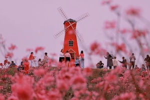 远远望去,像一片粉嫩海洋,蔚为壮观吸引游客咔嚓拍起来