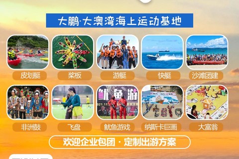 与香港的平洲岛隔海相望,距深圳市区45公里,。在蓝天碧波之间,踏着银光闪闪的沙滩,远离都市喧嚣,亲近自然的谐和,这里依山傍水、鸟语花香、百年的参天大树林立沙滩之上,为休闲度假的人们提供天然的荫凉庇护。2020年打造优质的海上运动基地,项目包括:皮划艇、桨板、摩托艇、快艇、游艇、帆船、潜水,以及沙滩团建和拓展等海上运动和旅游产品。