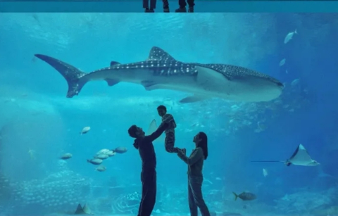 3.世界最大的蜕鲨展馆和亚克力玻璃,其展馆高达63m,亚克力玻璃宽达39.6米,高8.3m,650mm,重达250t;