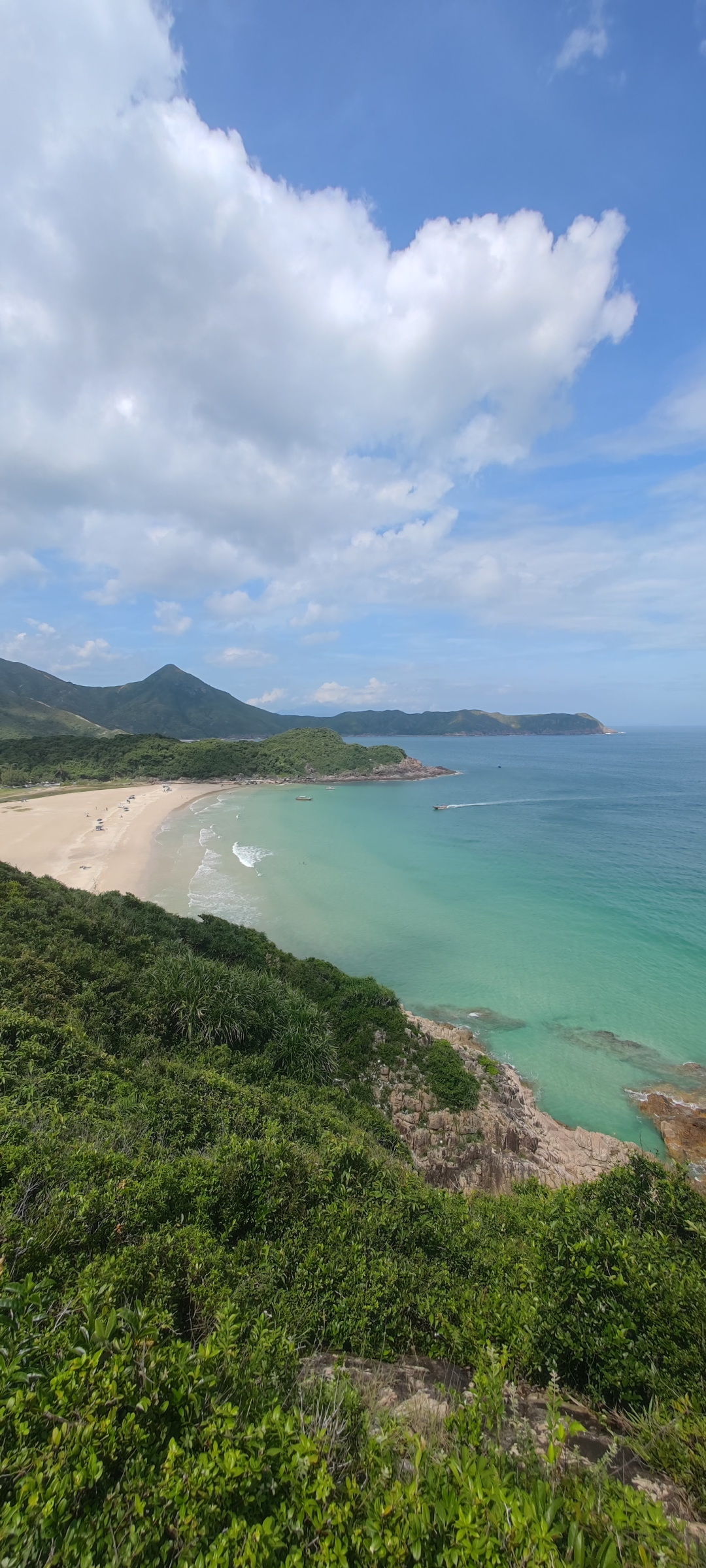 让我们再居高临下多看几次咸田湾,看到完整的沙滩及礁石