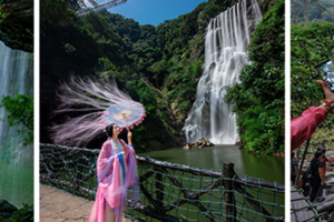 参加B线【古龙峡大瀑布】“飞流直下三千尺,疑似银河落九天。”李白一首《望庐山瀑布》上千年来引发了多少人观赏瀑布,体验感受今古长如白练飞,一条界破青山色的壮观景色的欲望。古龙九瀑共有九个瀑布,总长度610米,落差263米,是国内落差最大的阶梯瀑布群,也是广东最大的瀑布群。