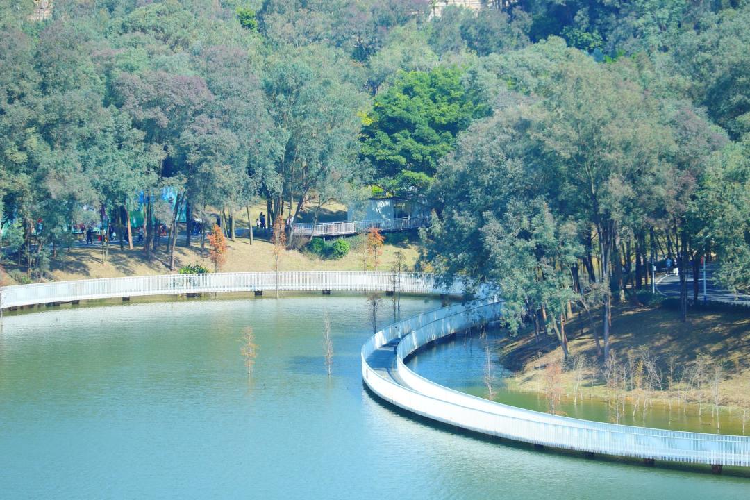 园区绿道、水库廊桥、乡村绿道、云上草原、霓裳园石板路组成,林荫覆盖50%以上;请注意根据指引做好防雨防晒,穿好徒步衣物,防止蚊虫叮咬、防止擦伤。