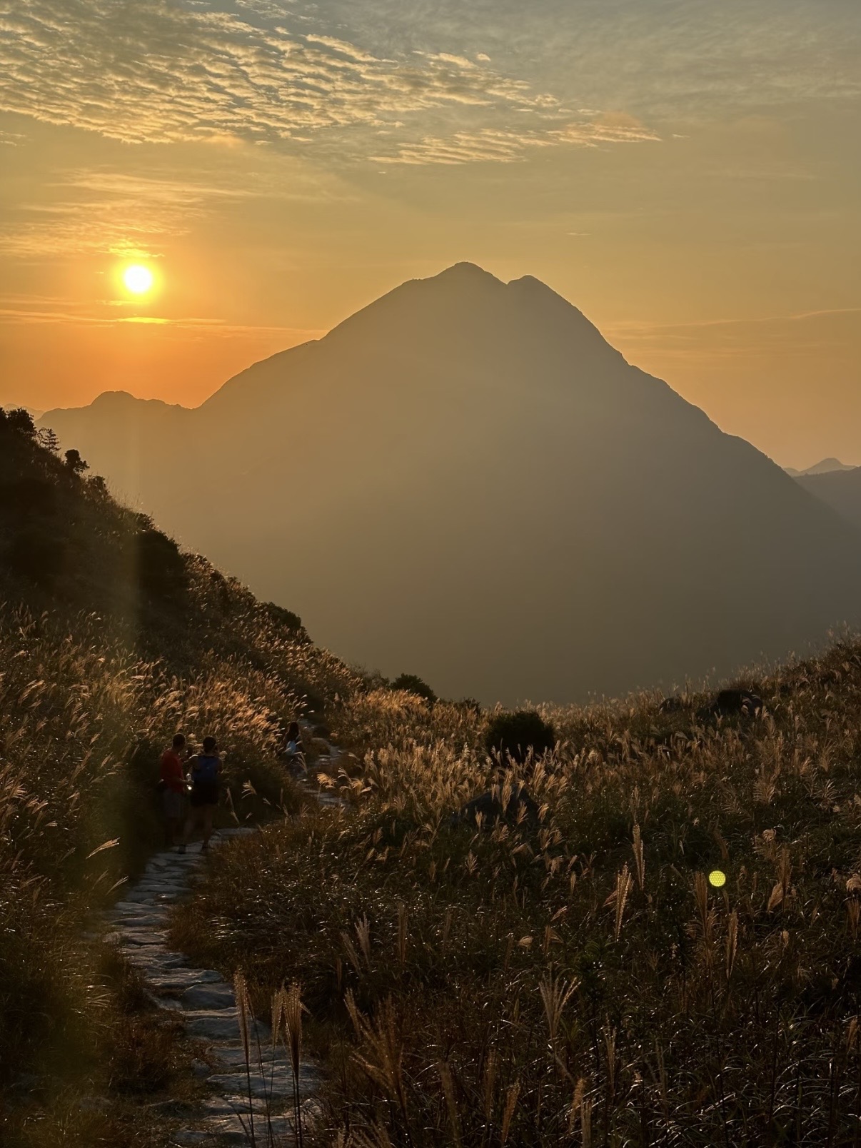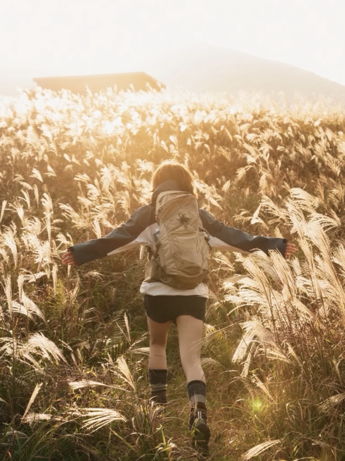 14:30 到达山顶打卡,可以在绿油油的草甸上一起躺平,拍各种大片。