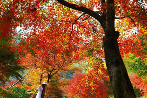漫山的枫叶里,深红、粉红、橙红、橘红,层次分明