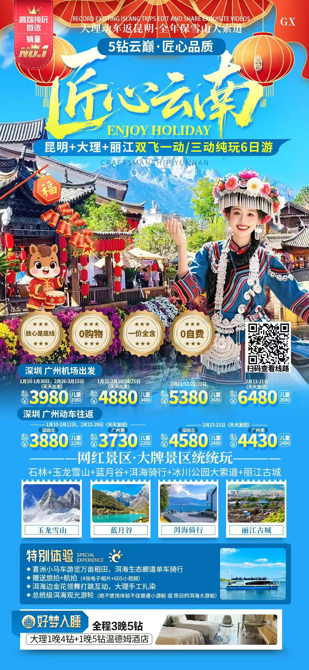 匠心云南丨昆明大理丽江双飞一动/三动纯玩6日游 [复制链接]