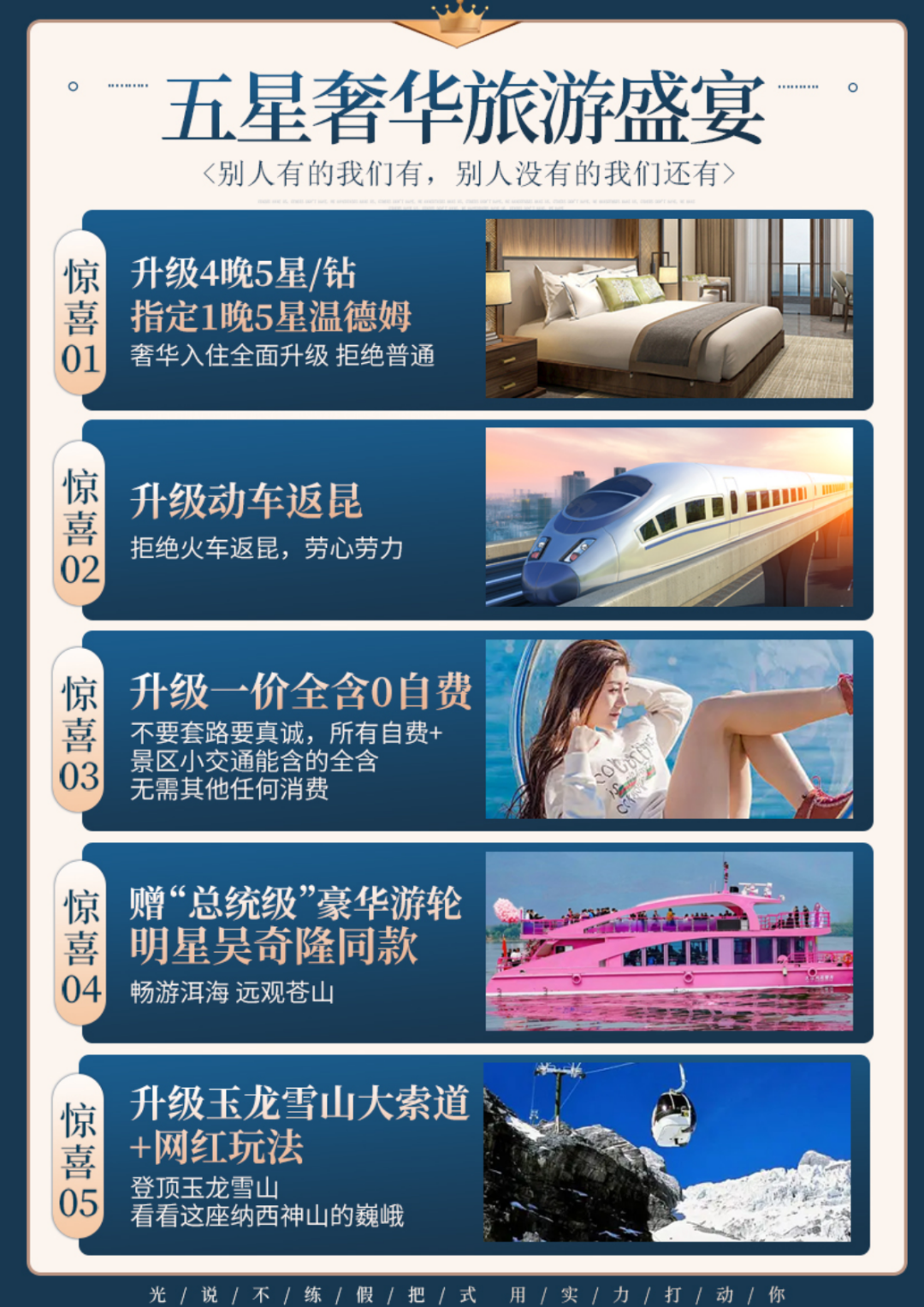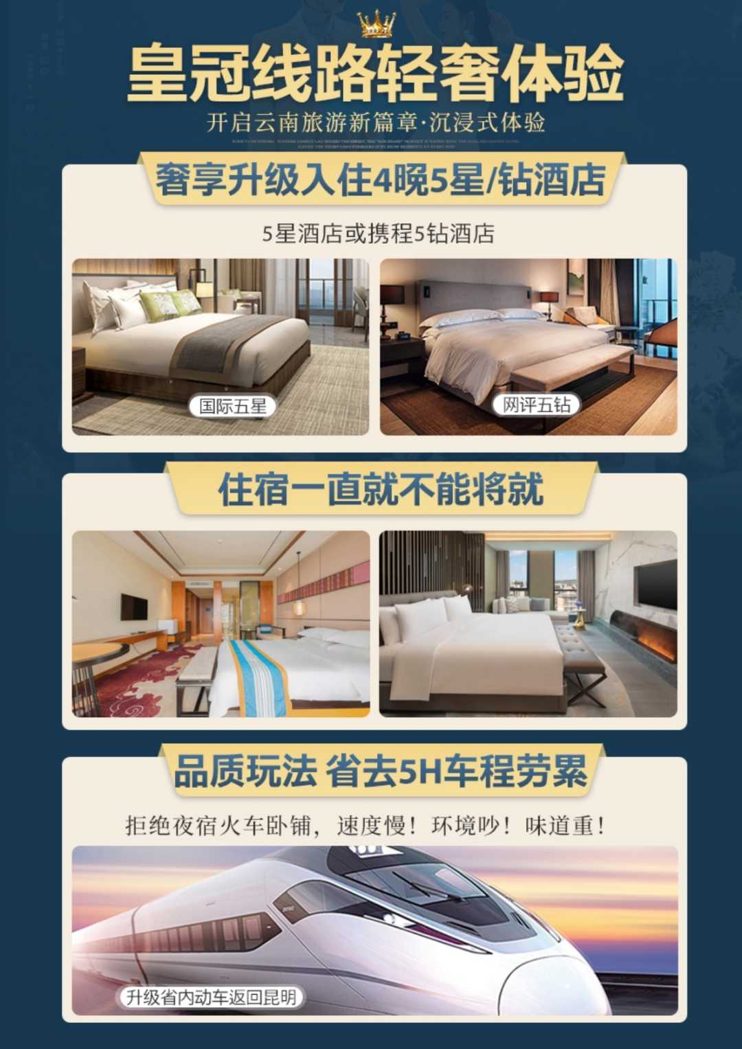 酒店参考: 昆明5钻酒店:星耀酒店、擎天新悦酒店、银园酒店、花之城豪生酒店或同级;