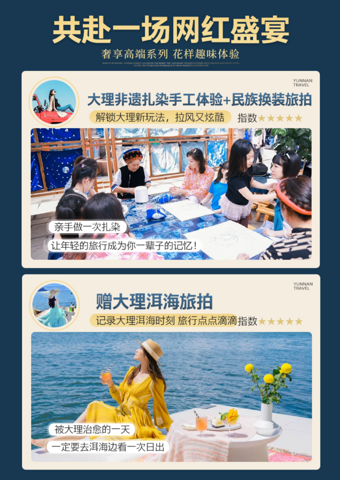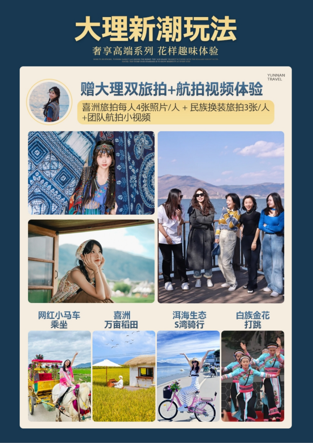 楚雄—洱海总统级豪华游轮—生态廊道骑行—旅拍航拍—换装打跳—小马车—非遗体验扎染—理想邦—大理酒店