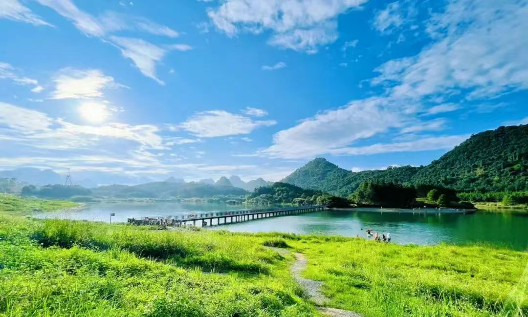 积庆里仙湖背倚群山,具有得天独厚的喀斯特地貌自然资源。仙湖情人桥·同心岛,一年四季,湖水清澈碧绿,与喀斯特地貌形成山水相映,如桂林山水般美丽动人。