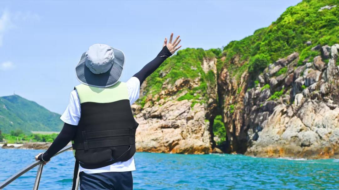 即可抵达竹篙岛,海风拂面,浪花飞溅