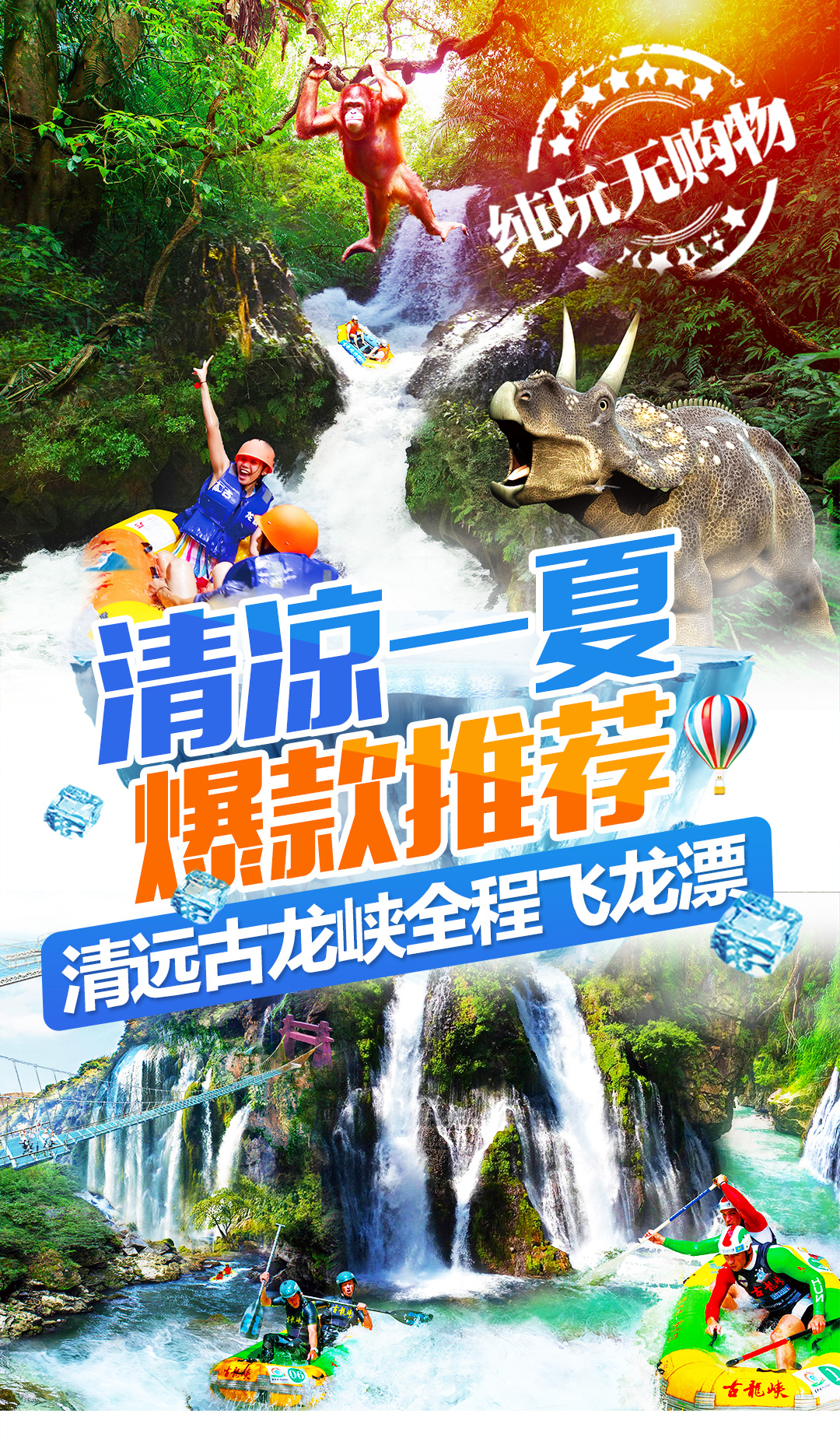 (周末及假期)清远古龙峡全程漂流、云天波霸大峡谷、峡道飞车、悬崖飞车一日游