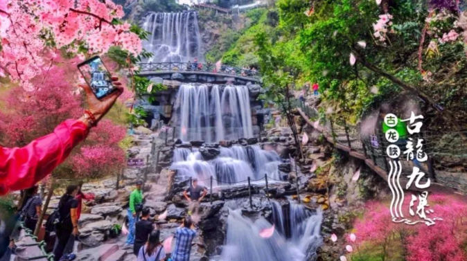 古龙九瀑又名万丈崖瀑布群,位于古龙峡河谷,长度610米,总落差263米,终年水流充沛,是国内落差最大的阶梯瀑布群;古龙九瀑顾名思义是由九段瀑布组成的浩大瀑布群,一瀑九曲,一曲一瀑,一折一潭,