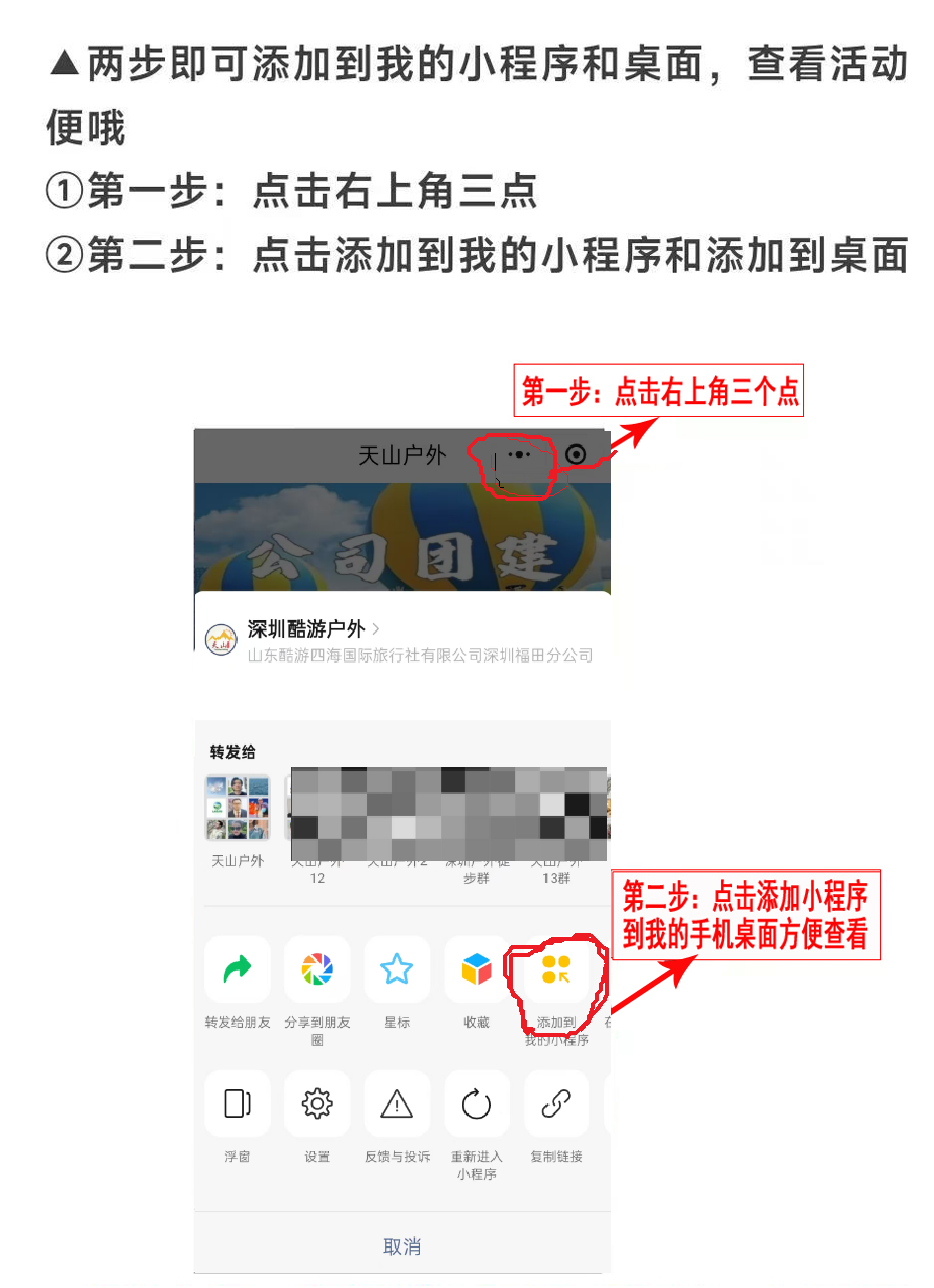【深圳酷游户外】小程序报名 → 当天转发 → 等待出行当天发给天山(任意号,最多延迟1-2天)