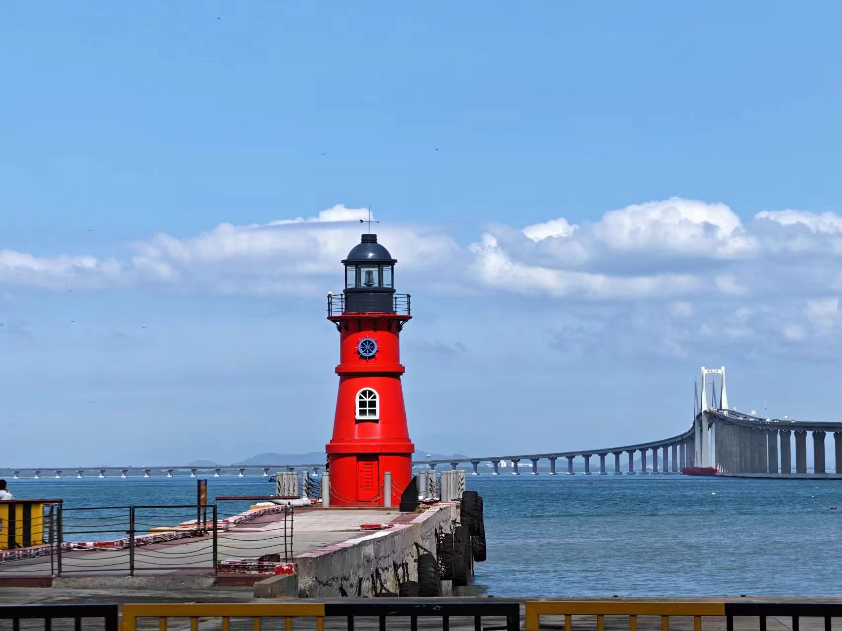 打卡启航广场灯塔,位于南澳跨海大桥长山尾码头一侧,广东省首个将旅游元素和海上助航功能融于一体的航标灯塔;灯塔是位于海岸、港口或河道,用以指引船只方向的建筑物。灯塔大部份都类似塔的形状,透过塔顶将光芒射向海面照明。灯塔是航海员的指明灯,看到灯塔意味着陆地,意味着希望。以前航海导航技术有限,茫茫大海中,漂泊数月的船只,如果看到灯塔,那真的是打从心底感到欣慰,灯塔是海员们的港湾。