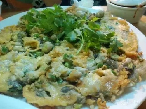 【蚝烙】是广东省潮汕地方特色小食,台湾地区称为蚵仔煎,外地人来潮汕总要尝一尝这—美食。在潮汕城市乡村小市集,常有这种小店或摆摊小贩。这种蚝烙,是用地瓜粉溶于水,拌葱珠,在一个平底的铁锅上煎,加上海蛎,再下蛋花,取起蘸鱼露吃