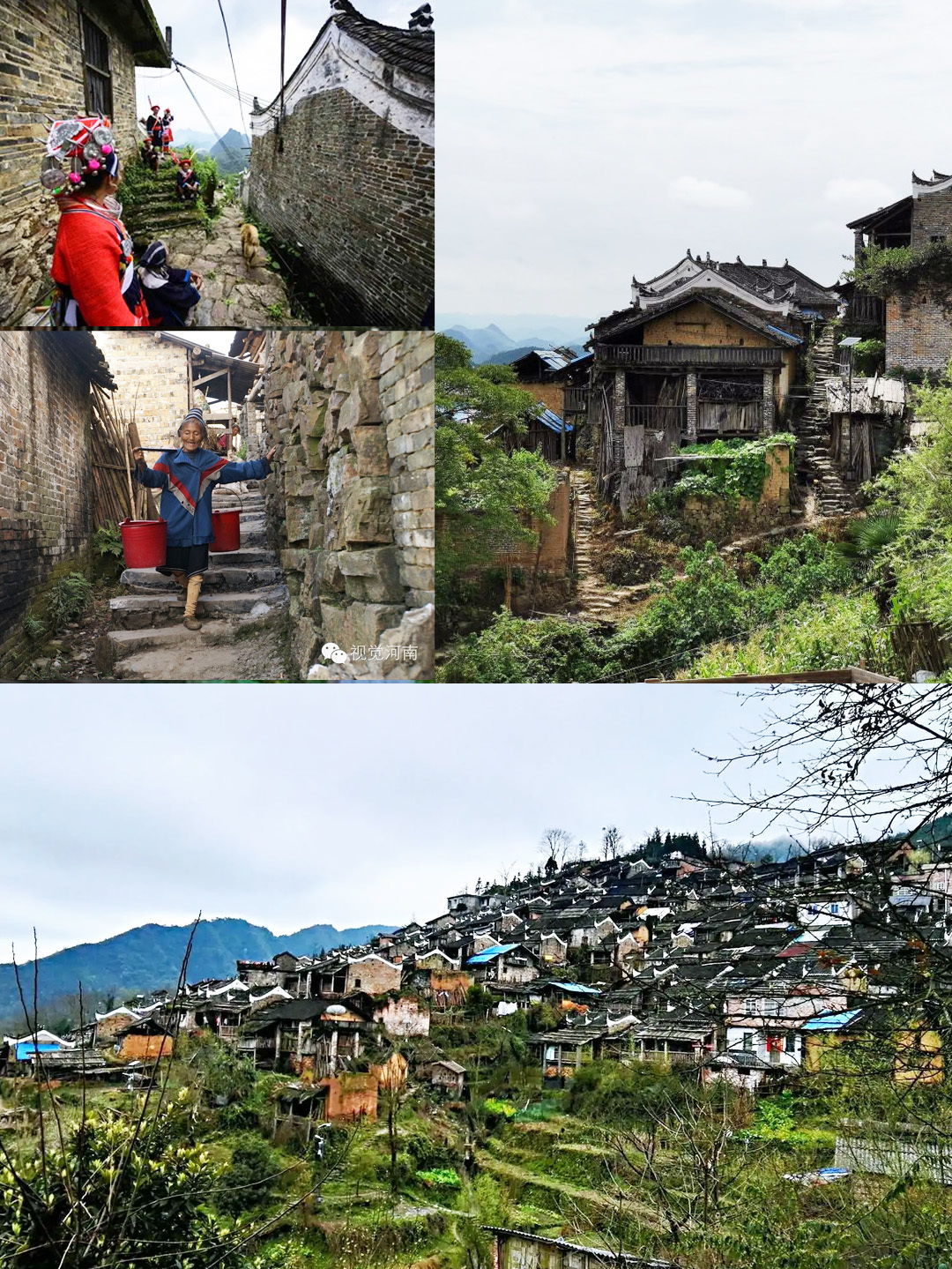 老人们穿的大都是瑶族服饰,妇女用白色的缠腰带绑住蓝色的襟衣,男人戴着红盘头巾———据说,这红头巾放下来有一丈多长。