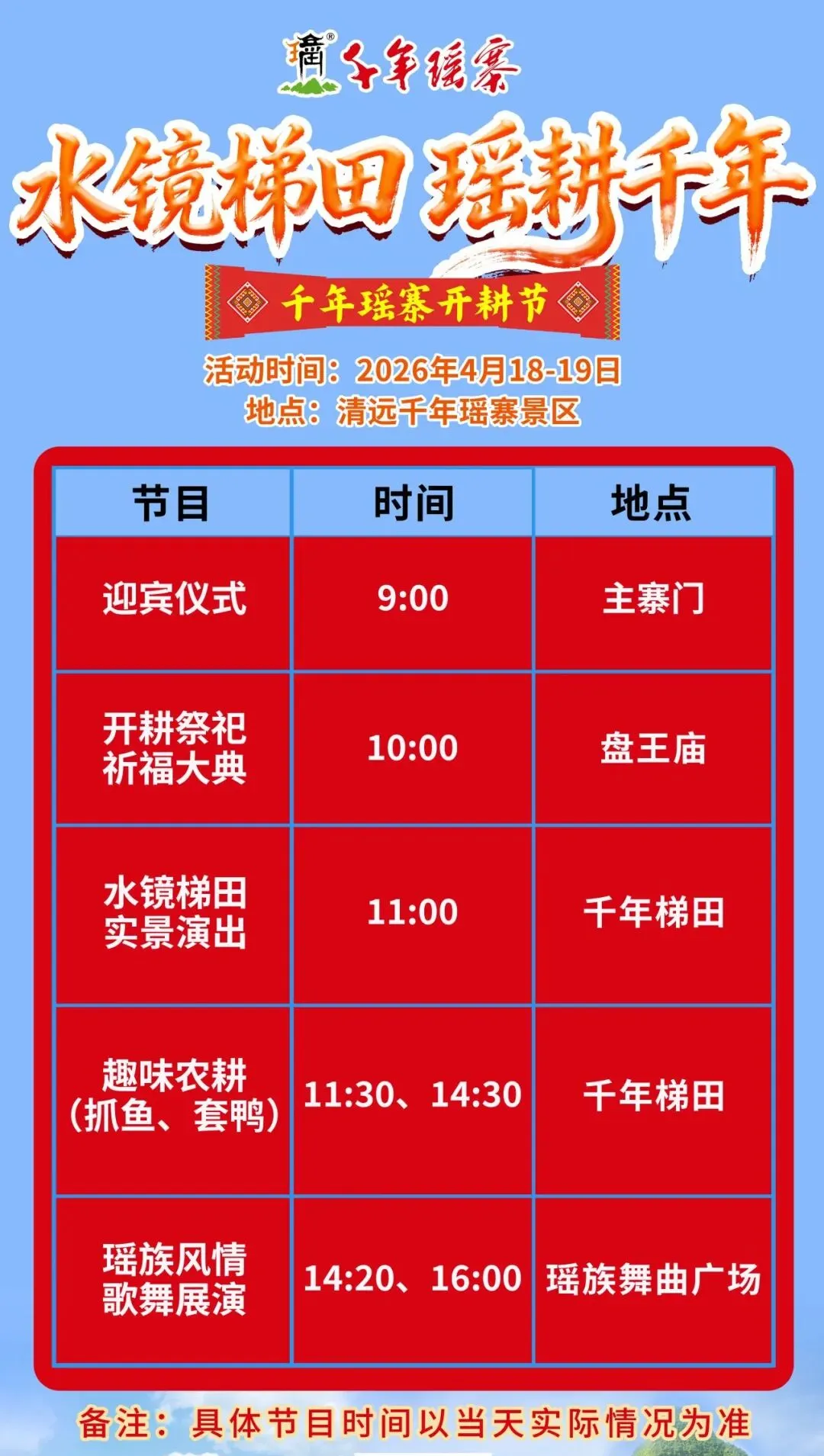 2026年4月19日"水镜梯田·瑶耕千年"千年瑶寨开耕节正式启动——