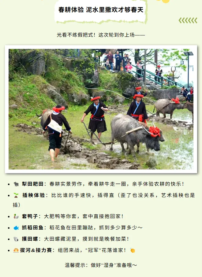 看瑶歌瑶舞闹春耕,踩田埂、戏流水、学插秧、抓田鱼……