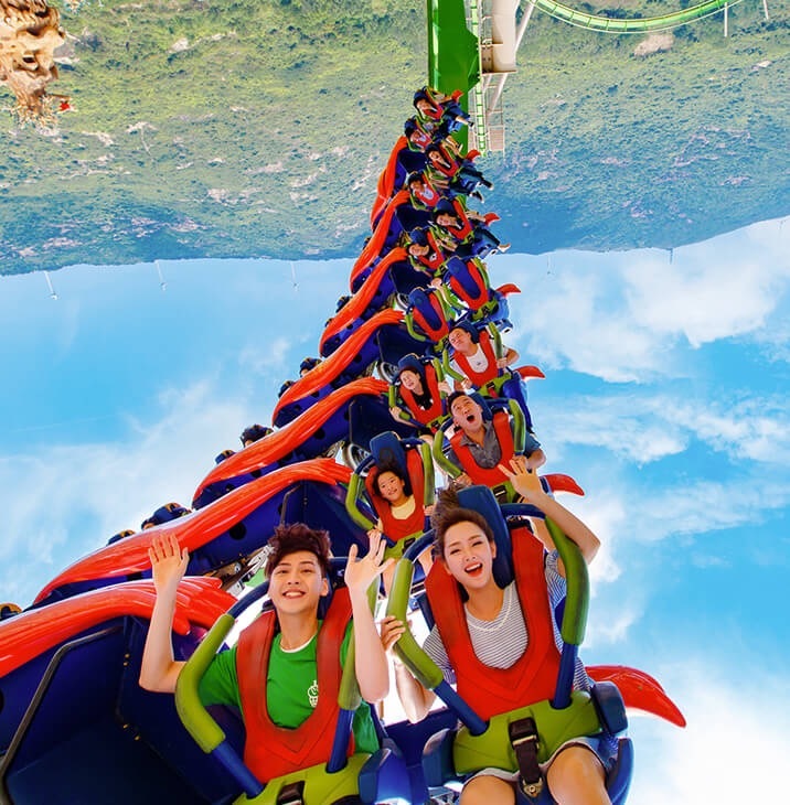 1.亚洲第一个飞行过山车,其轨道全球最长,达1.278米,高达50米;
