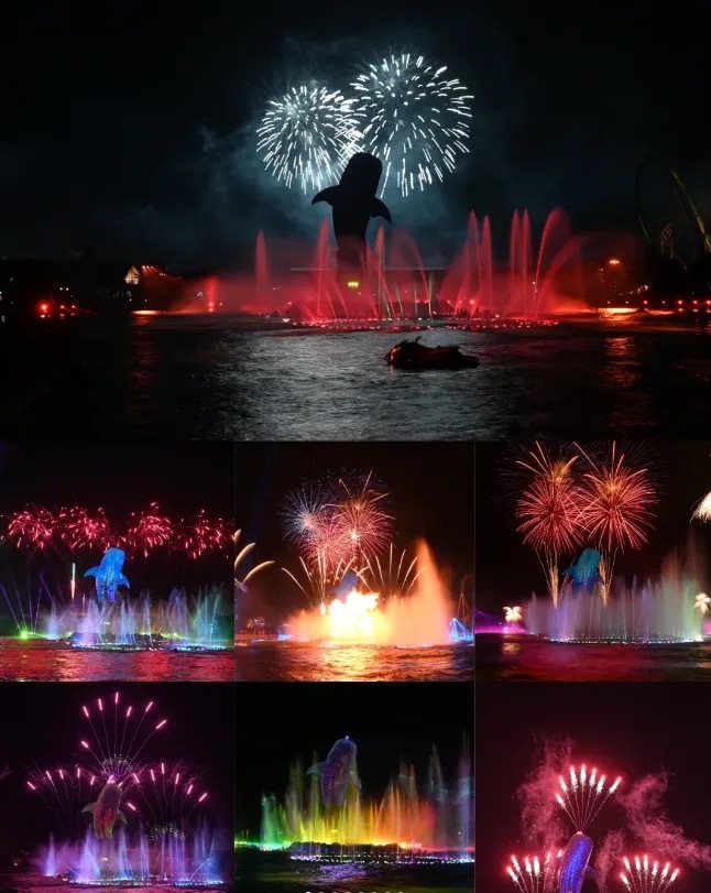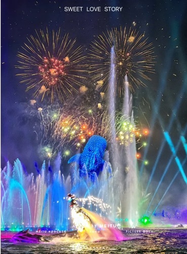 6.最震撼独特的中心湖表演,水灯光、投影、激光、烟花.....共同创造出一个令人银花缭儿激动人心的壮观场面;