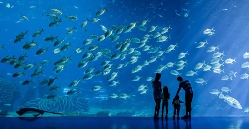 3.世界最大的蜕鲨展馆和亚克力玻璃,其展馆高达63m,亚克力玻璃宽达39.6米,高8.3m,650mm,重达250t;