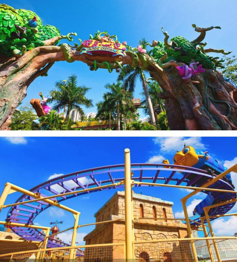 深圳欢乐谷里的矿山车是国内第一座巷道式矿山车,要算是金矿镇主题区的招牌项目了,坐在飞速行进的矿车上,直面迎来的悬岩峭壁,攀爬、进洞、出洞、下滑、倾斜、急转…